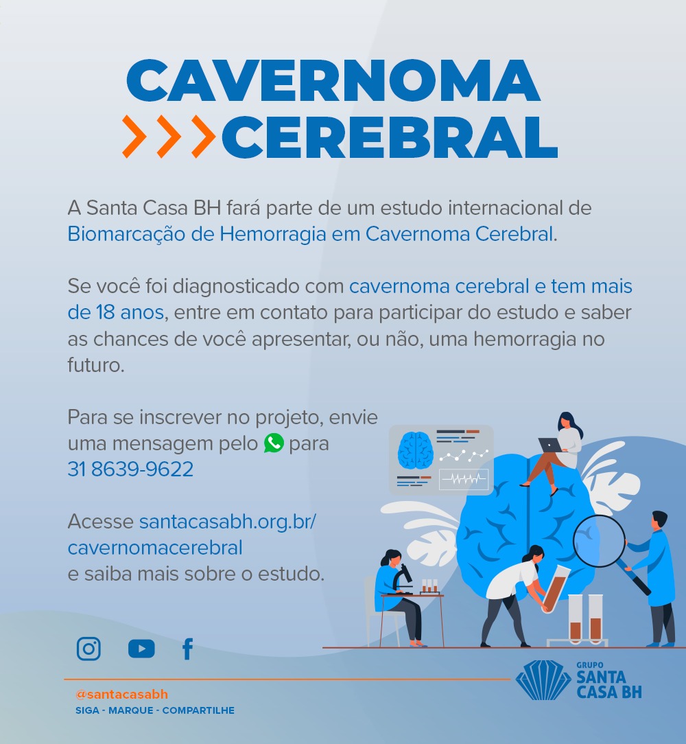 Santa casa de Belo Horizonte anuncia participação em estudo internacional de biomarcação de hemorragia em cavernoma cerebral